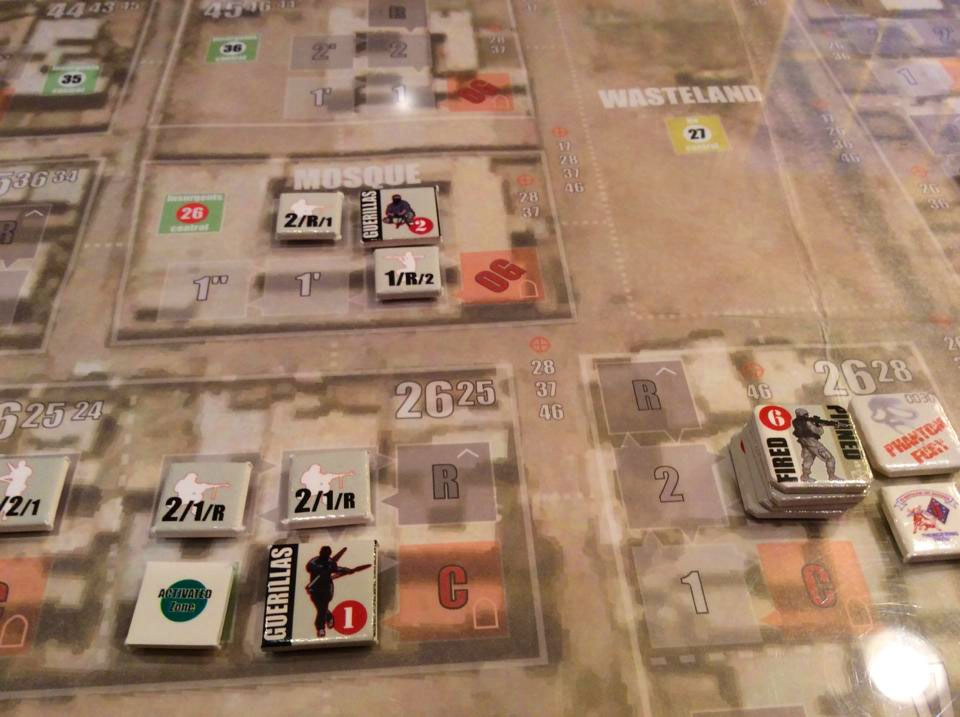 In a nutshell, Insurgents flee via egress routes when attacks fail against them (marked on the board by location) so you have the pleasure of meeting them again later. Martyrs hold firm. They’re not going anywhere. Ever. You will learn to fear the Martyrs, and you will often find yourself burning through your CIAAT assets to rid yourself of the headache and to keep pace with flanking Marine units that may be advancing ahead. In the end, Martyrs will often slow your units’ advances and will sometimes lock a unit in place for two or more turns. They are imbeciles!