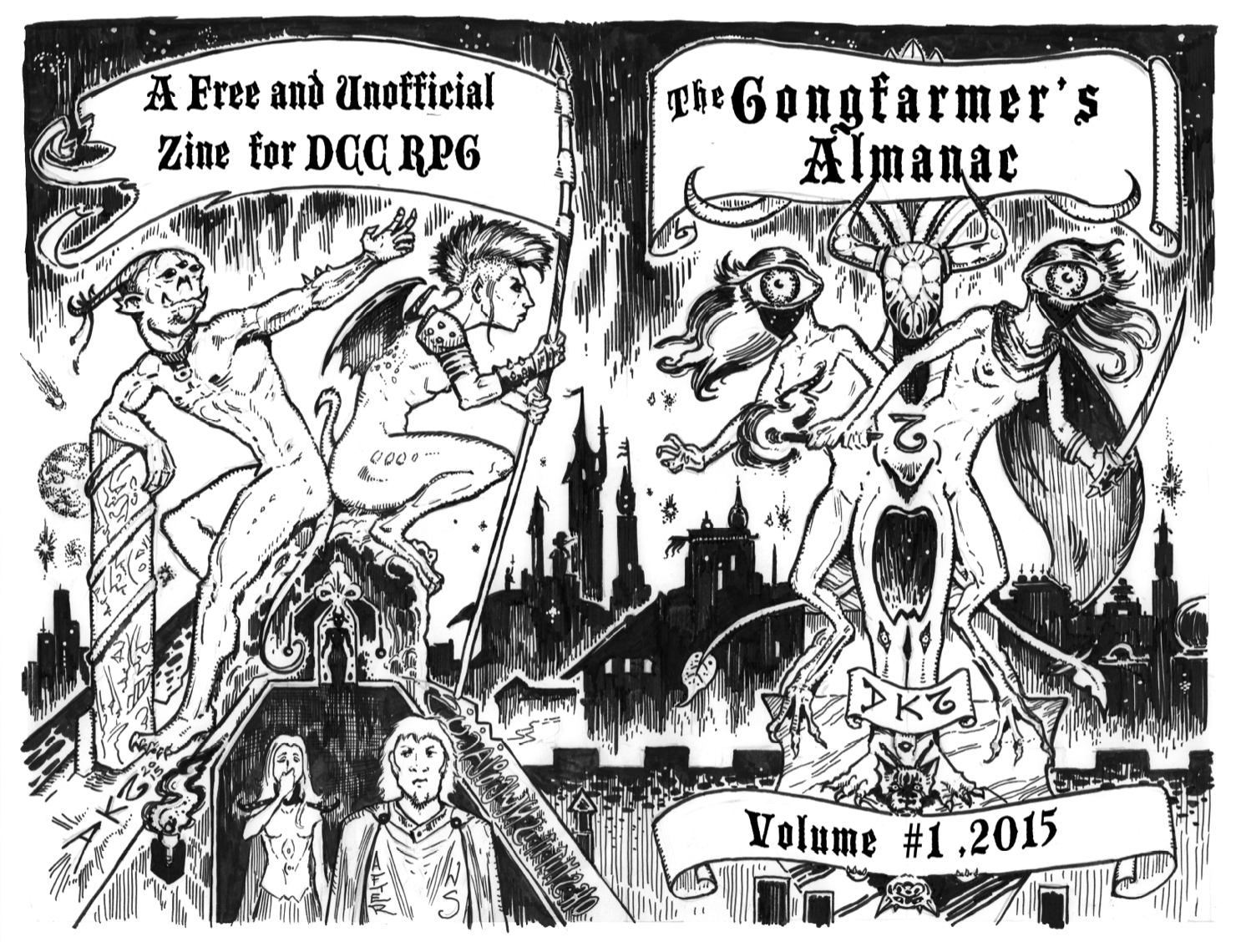 Gongfarmers-Almanac-Cover-Volume-1Your starting tavern is the DCCRPG community on Google+, where you’ll find the writers and artists of DCC interacting and collaborating with its fans. The barrier between creators and fans is as transparent as a gelatinous cube, jiggling with new ideas, rules, and game material. Many of these ideas coalesced into The Gongfarmer’s Almanac, a zine created by the G+ community (stretching across six volumes!) kicked off by DCC author Harley Stroh that was free at Gen Con 2015 and is now available online. You can read “The Dryad’s Tree,” an excerpt from my DCC novel, in Volume 4.