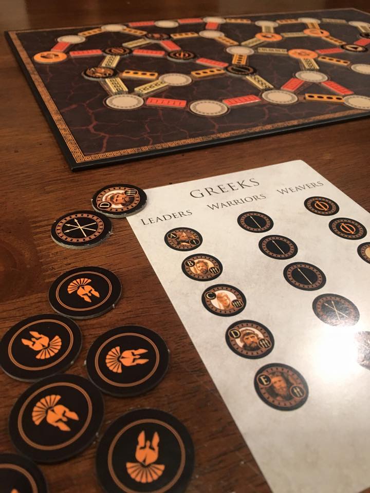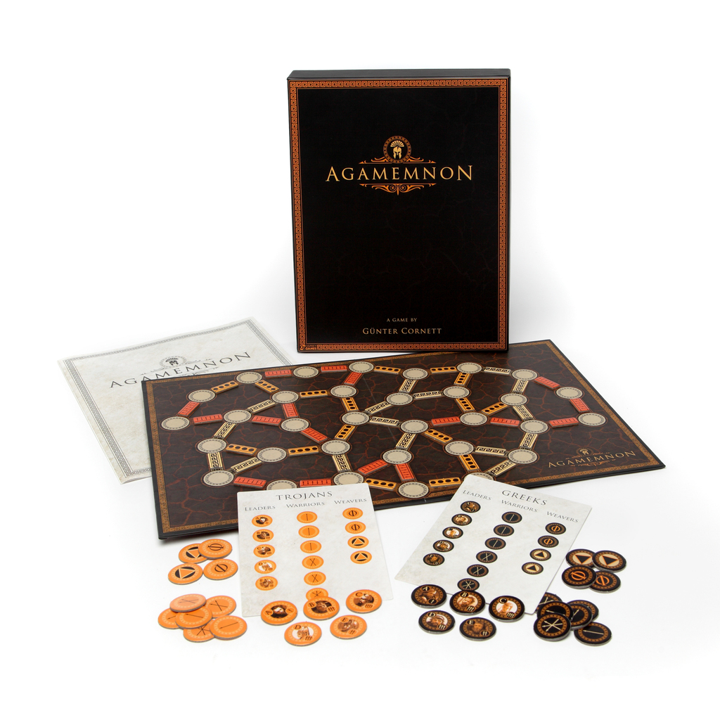 Agamemnon is a terrific “thinky” game that can be played in 30 to 40 minutes, which frankly is the sweet spot for a sometimes mentally taxing game such as this. I’ve played several rounds over lunches with friends, so office workers should definitely consider this offering to accompany their bologna sandwiches. And if you happen to spill on the game board, there’s another side that will remain free of ketchup and represents an alternative, random setup option (called “The Loom”) for the string tokens, making every game even more varied. Finally, players can opt to tinker with some interesting optional rules, such as keeping all the token face up or keeping the tokens face down, but in piles separated by type.