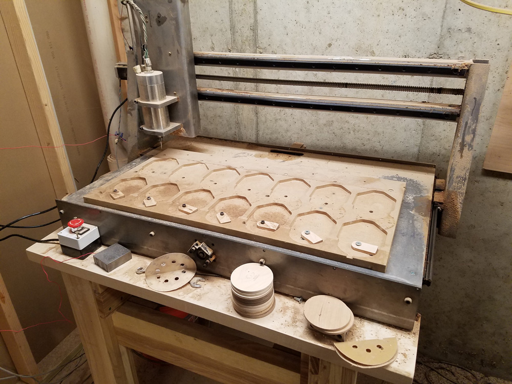 “The average time I spend creating a coaster — all told — is about 20 minutes,” said Ingram. “From rough cut lumber to packaged up. The vast majority of that is machine time, which can range from 13 to 21 minutes.”