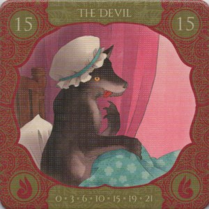 The game includes 22 thick and sturdy story tiles, each of which represents a different folk tale from around the world. The tiles come in four sets of colors (four black, five yellow, six blue, and seven red).